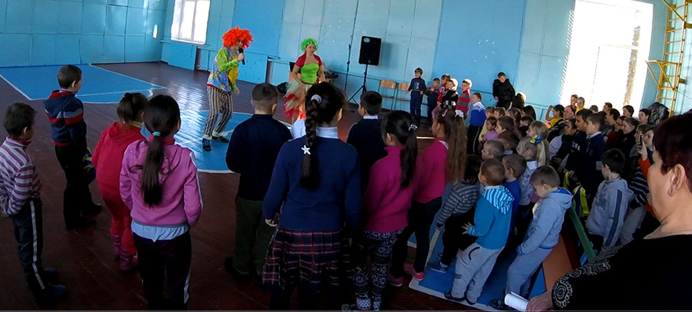 В спортивном зале школы собрались детки из всех классов, а также детского сада, чтобы вместе с нашими клоунами Степой и Вишенкой повеселиться и поиграть. Веселые конкурсы и активные игры понравились ребятам. Девочки с мальчиками даже сразились между собой в танцевальном батле, победителем которого стал абсолютно каждый участник.