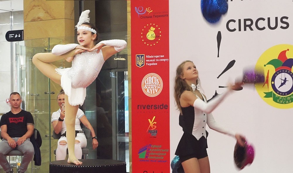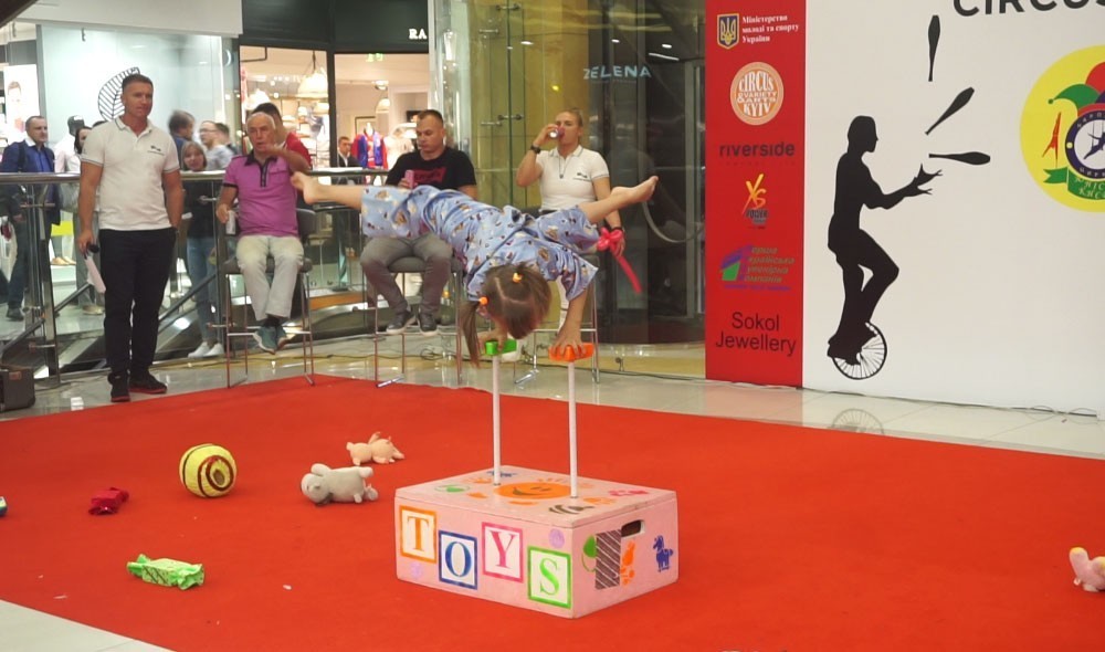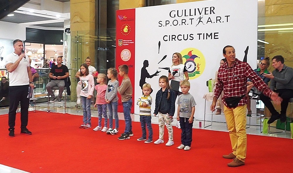 В завершение праздника несколько детей из зала, пожелавшие продемонстрировать свои цирковые навыки также получили подарки — сертификаты в веревочные парки города Киева.